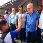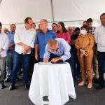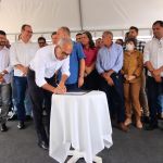 “É uma obra muito importante para a região. Com isso, a gente reforça o sistema de captação de água, a partir de Porto da Folha. Nós temos hoje três adutoras sendo reforçadas nessa região, a adutora do Alto Sertão, Adutora Sertaneja e Adutora do Semiárido. Especificamente em relação à adutora do Alto Sertão, a gente vai duplicar a partir das proximidades de Nossa Senhora Aparecida e com isso, haverá um reforço no abastecimento d’água nos municípios de Frei Paulo, Pedra Mole e Pinhão e daqui a gente vai ampliar e levar água do São Francisco para o município de Simão Dias. Nessa ordem de serviço estão sendo investidos R$ 80 milhões e mais cerca de R$ 80 milhões, que nós já estamos investindo no reforço dessas adutoras. As obras já estão sendo executadas e os recursos estão totalmente garantidos. Portanto, a gente melhora a qualidade vida das pessoas”,  destacou o governador Belivaldo Chagas, que anunciou o projeto da quadra de esportes do colégio estadual Professora Anita Passos, de Pinhão e entrega de mais um ônibus escolar para os municípios de Pinhão e Pedra Mole.