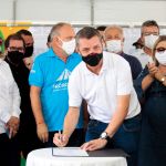 O governador Belivaldo Chagas autorizou, nesta sexta-feira (10), obras no Alto Sertão sergipano que somam cerca de R$ 6 milhões e levarão mais desenvolvimento à região e segurança a quem trafega nas rodovias estaduais. Em Nossa Senhora da Glória, o governador assinou ordens de serviço para duplicação da entrada da cidade de Glória e execução dos serviços de revestimento primário da rodovia SE-175, no trecho entre Nossa Senhora da Glória e Gararu. As duas obras somam 62,25 km de extensão, fonte de recursos do Tesouro do Estado, e estão inseridas dentro do programa Avança Sergipe, que tem como finalidade a recuperação da economia sergipana. O governador anunciou, ainda, o projeto de construção do Complexo de Segurança Pública de Nossa Senhora da Glória.