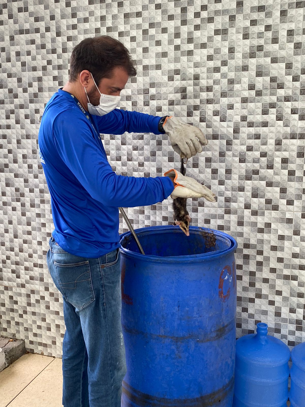 Já no bairro Farolândia, também na Zona Sul, a equipe resgatou dois saruês (Didelphis aurita) que estavam em um condomínio residencial contidos em um tonel. Por estarem saudáveis e responsivos, os animais saudáveis foram postos à soltura.