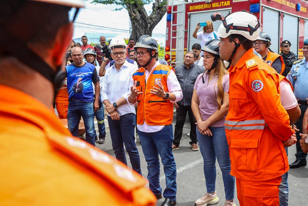 O Governo do Estado está dando todo apoio às famílias e às vítimas do desabamento parcial de um edifício residencial no bairro Santo Antônio, em Aracaju. Nesta terça-feira, 2, o governador Fábio Mitidieri esteve no local com o intuito de prestar solidariedade e acompanhar o trabalho que vem sendo realizado pelo Corpo de Bombeiro de Sergipe. Por dia, são 50 bombeiros na operação. O desabamento aconteceu no último domingo, 31, e, de acordo com o Corpo de Bombeiros, a suspeita é que foi causado por uma explosão de um botijão de gás.