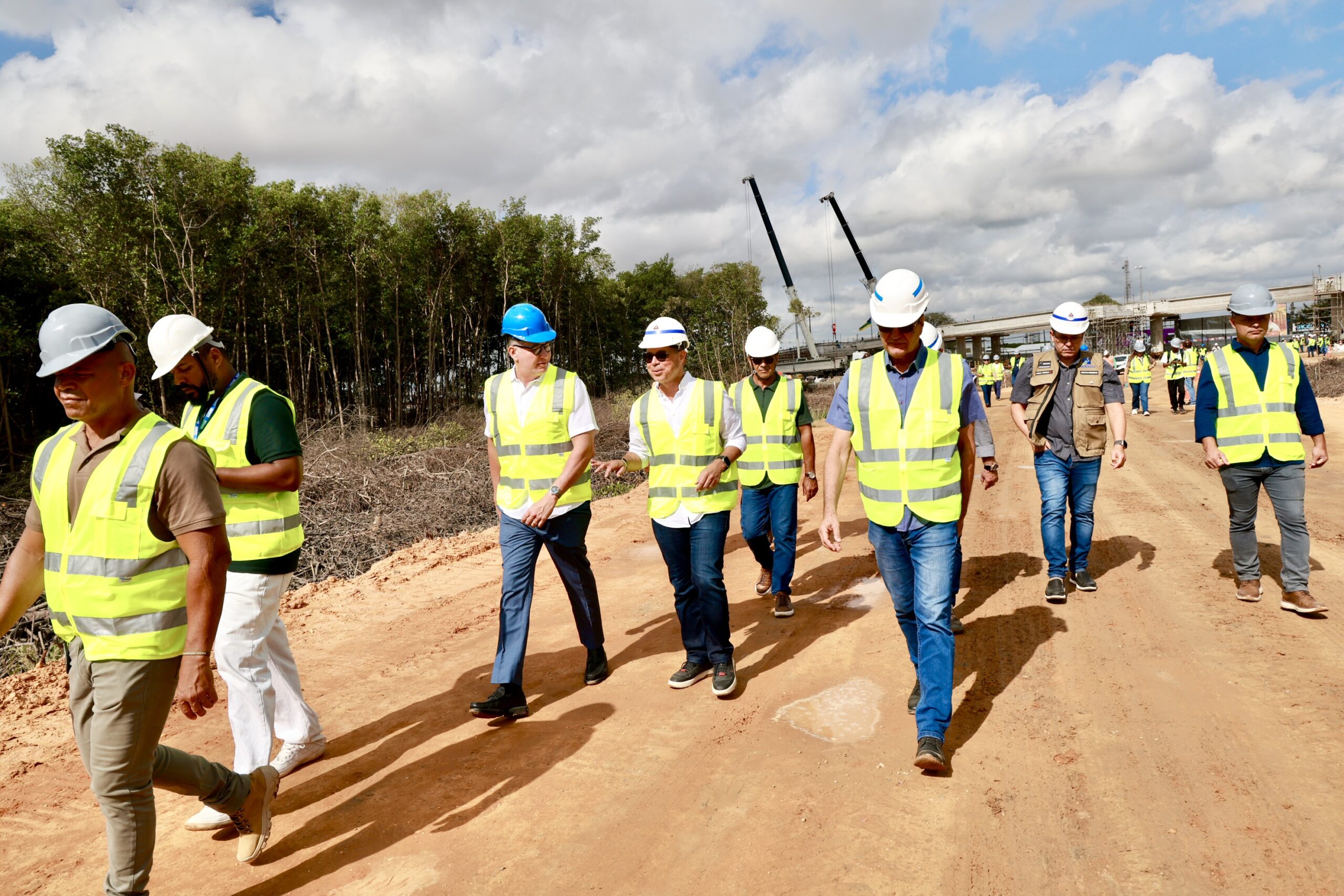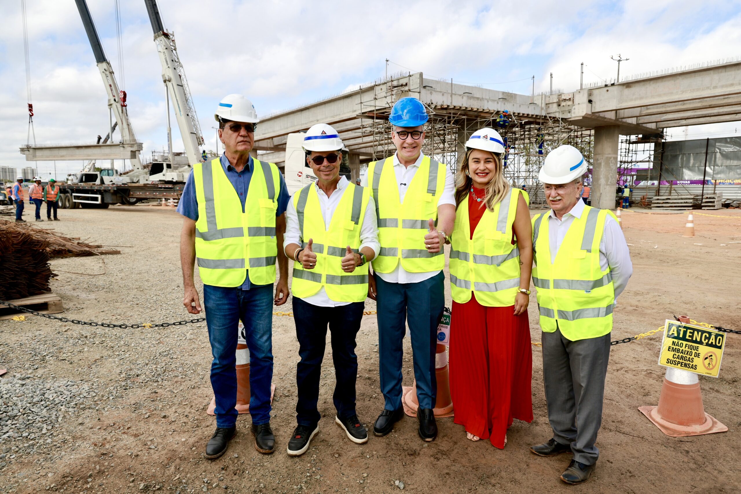 Durante a visita, o governador acompanhou de perto a montagem das primeiras vigas do viaduto de 180 metros que integra o complexo, iniciada na última quinta-feira, 29 de janeiro. A instalação das estruturas pré-moldadas representa um avanço no cronograma da obra, que segue dentro do prazo estabelecido.