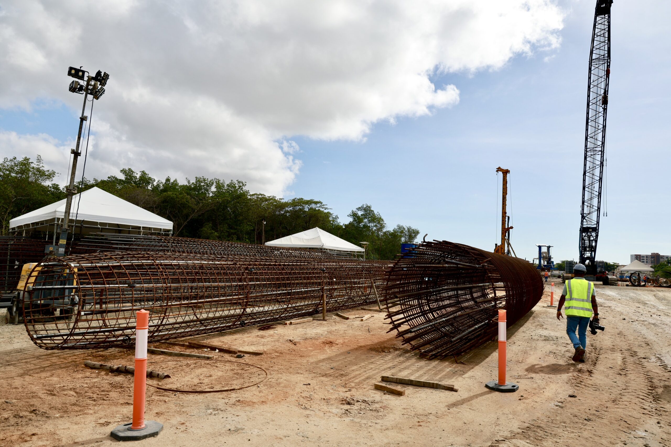 Segundo Francisco, os trabalhos seguem simultaneamente na ponte estaiada. “A obra da ponte avança em duas frentes: na margem da Coroa do Meio, onde já concluímos toda a fundação e estamos entrando na etapa do bloco que receberá o mastro; e na Beira Mar, onde estamos executando as estacas e devemos concluir a quinta das 20 previstas ainda esta semana. Atualmente, cerca de 400 trabalhadores atuam no Complexo Maria do Carmo Alves, o que nos permite manter o ritmo e cumprir rigorosamente o cronograma, que está, inclusive, um pouco adiantado nessa etapa”, detalhou.