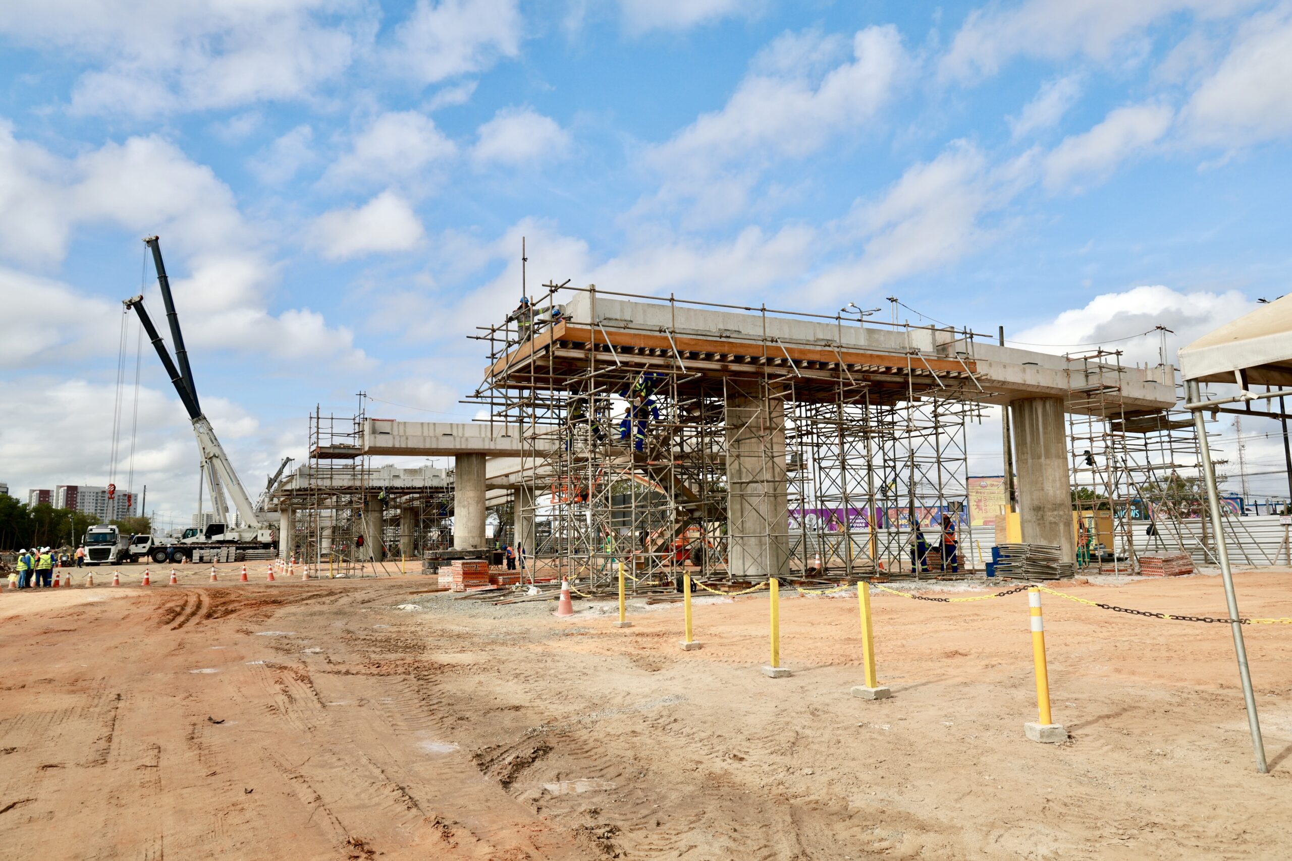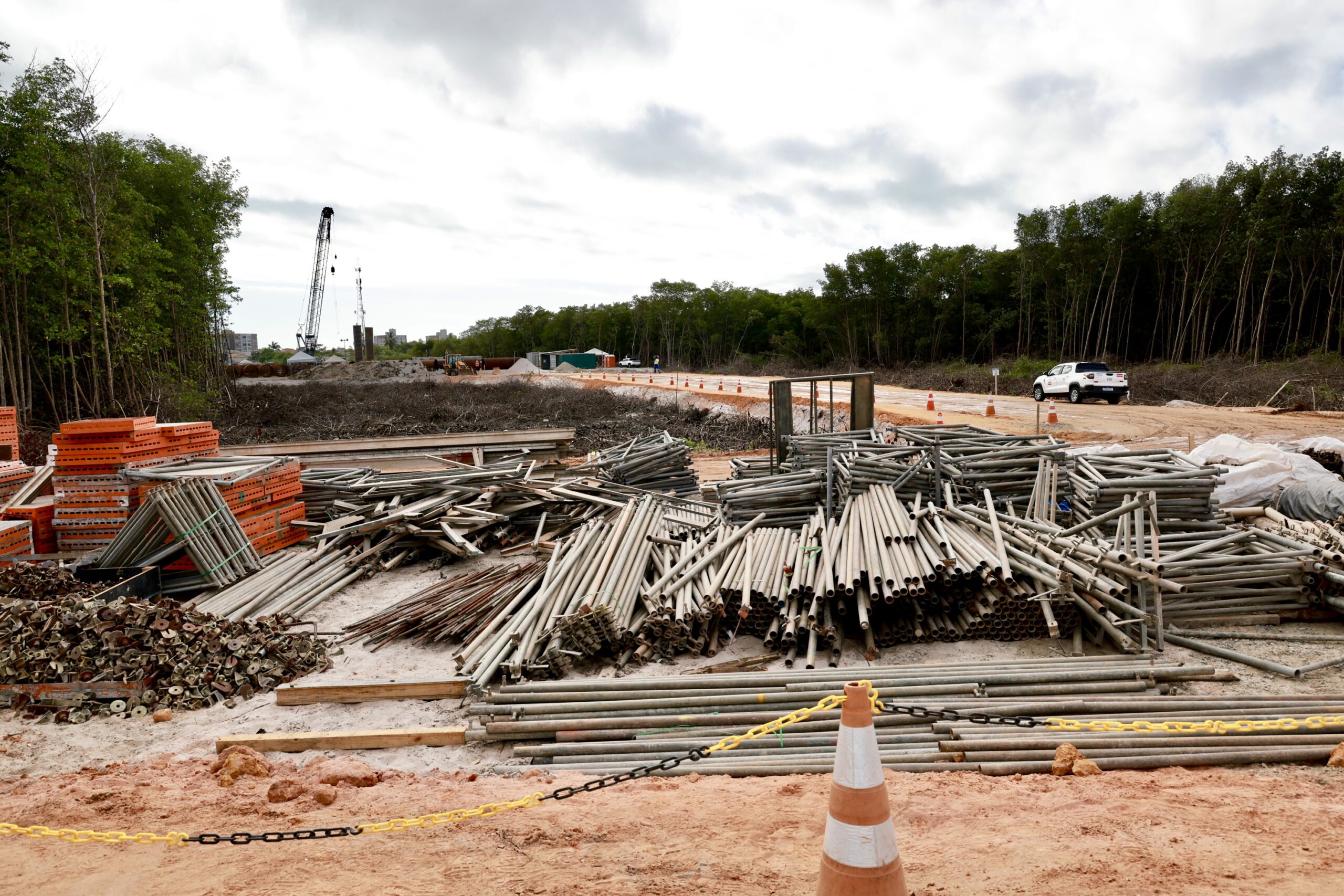 Na ponte estaiada, a fundação profunda do lado da coroa central foi finalizada, e os trabalhos avançam para a execução do bloco que sustentará o mastro. Já na margem da Beira Mar, a fundação segue em andamento.