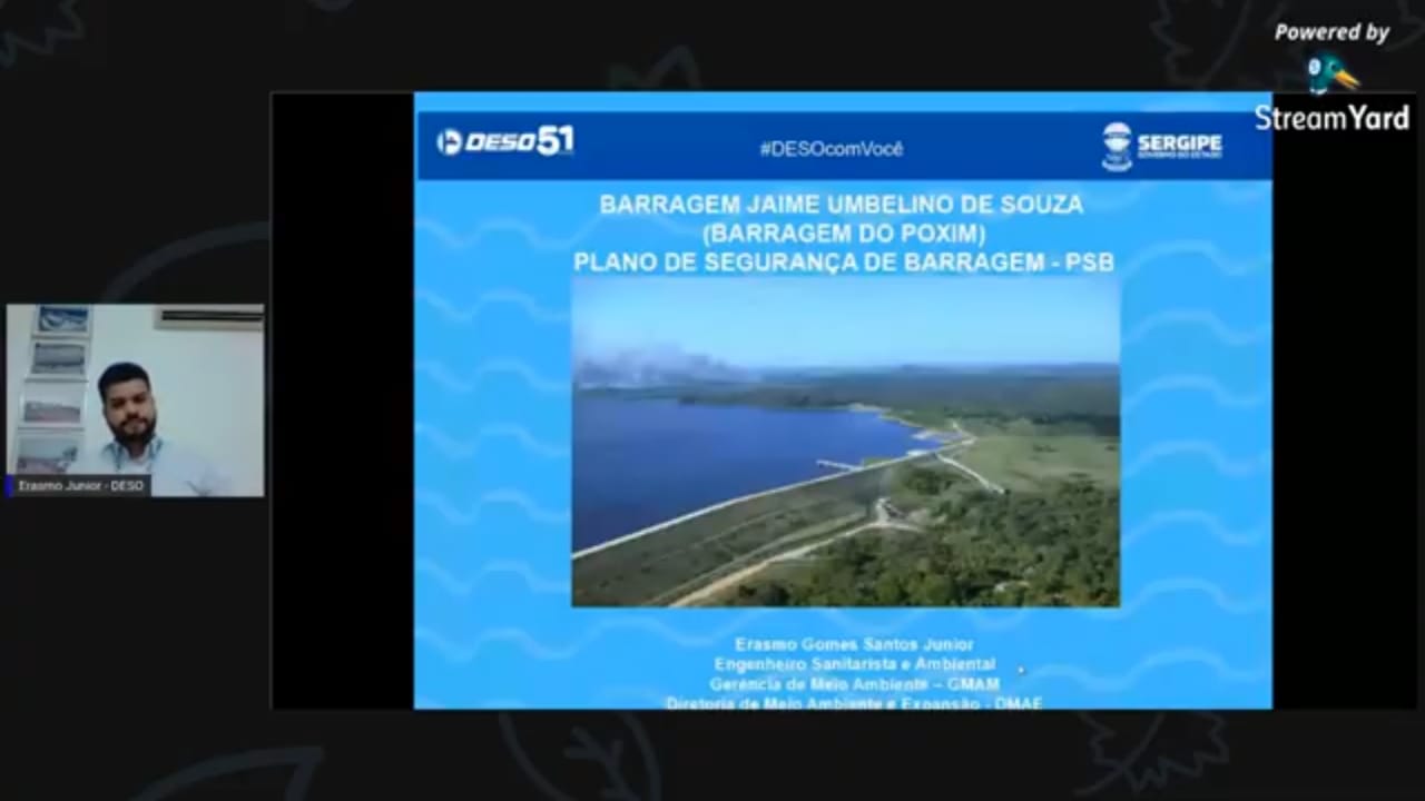 Atualmente em elaboração pelo Governo de Sergipe, por meio da Secretaria de Estado do Desenvolvimento Urbano e Sustentabilidade (Sedurbs), Companhia de Recursos Hídricos de Sergipe (Cohidro) e Companhia de Saneamento de Sergipe (DESO), o Plano de Segurança de Barragens e o Plano de Ação de Emergência, ambos, dois dos principais instrumentos da Política Nacional sobre Segurança de Barragens, foram os temas principais do II Webinário sobre Segurança de Barragens em Sergipe.