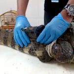Jacaré é devolvido à natureza depois de passar por tratamento