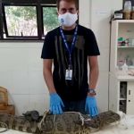 Réptil apresentava tumor raro na calda e foi submetido à cirurgia com processo de cicatrização inovador