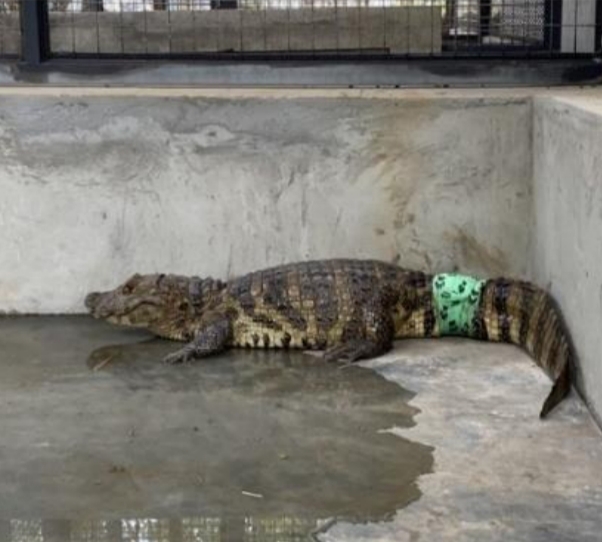 Réptil apresentava tumor raro na calda e foi submetido à cirurgia com processo de cicatrização inovador