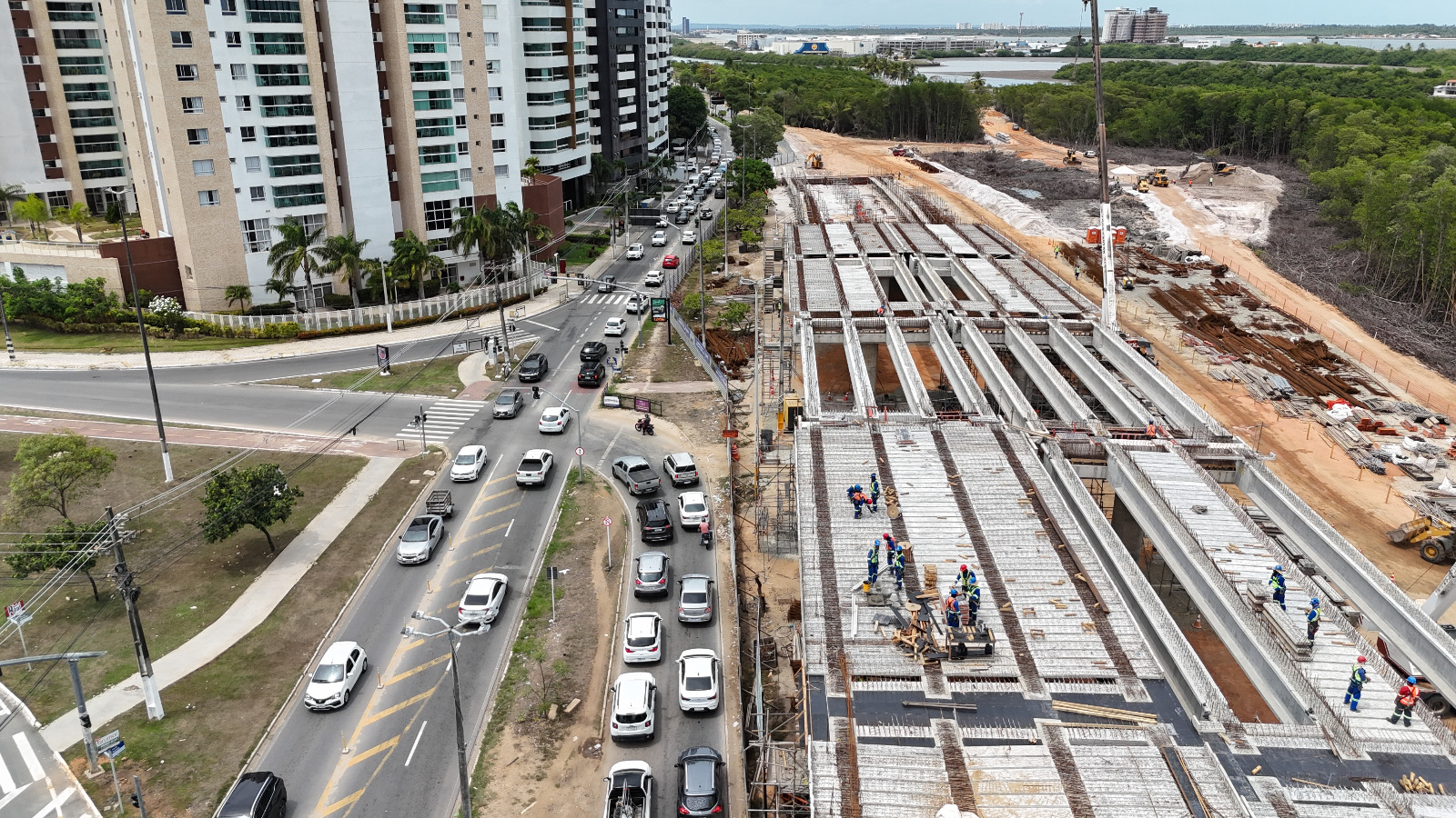 O secretário de Estado do Desenvolvimento Urbano e Infraestrutura, Luiz Roberto Dantas, afirmou que a execução da obra segue dentro do planejamento físico-financeiro e reforçou a entrega do viaduto prevista para maio. “Agora, no mês de maio, entregaremos o viaduto da Avenida Beira Mar, liberando o trânsito dessa região, e seguiremos com a obra que será entregue, por completo, em agosto de 2027, já com os acessos, ciclovia elevada e a ponte estaiada que interliga os bairros Inácio Barbosa e Coroa do Meio”, frisou.